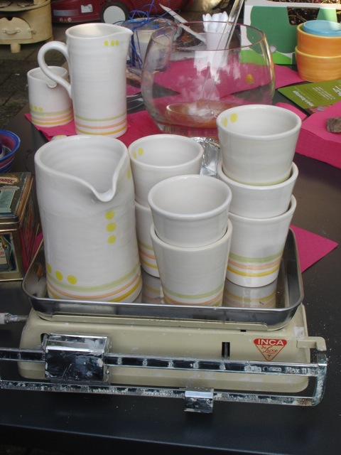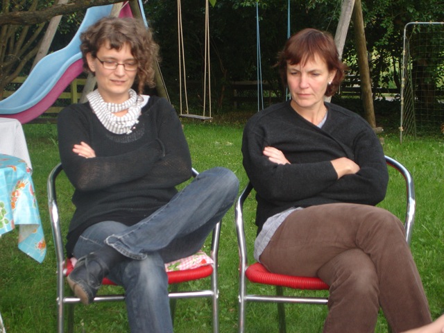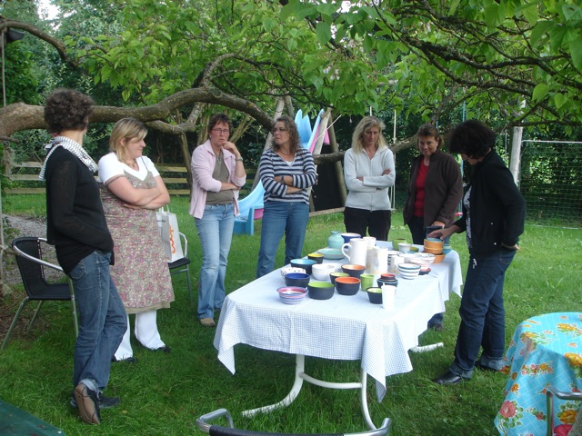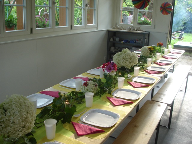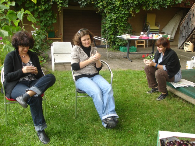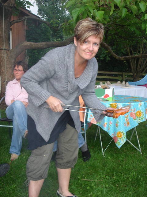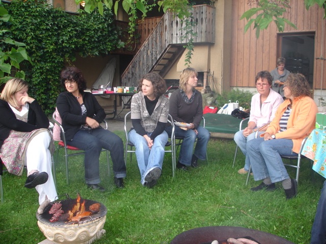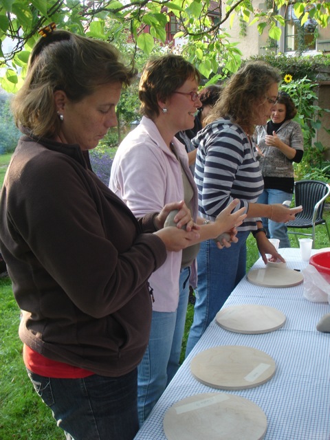 Am 10. Juli stieg das Sommerfest für alle aktiven und einigen ehemaligen „Drehkursfrauen“ der Töpferei zur Held. Da es eher kühl war an diesem Abend, mussten wir in der Töpferei essen. Die Vernissage aber und natürlich das Brätle fanden draussen statt. Und dann mussten die Frauen auch noch arbeiten...